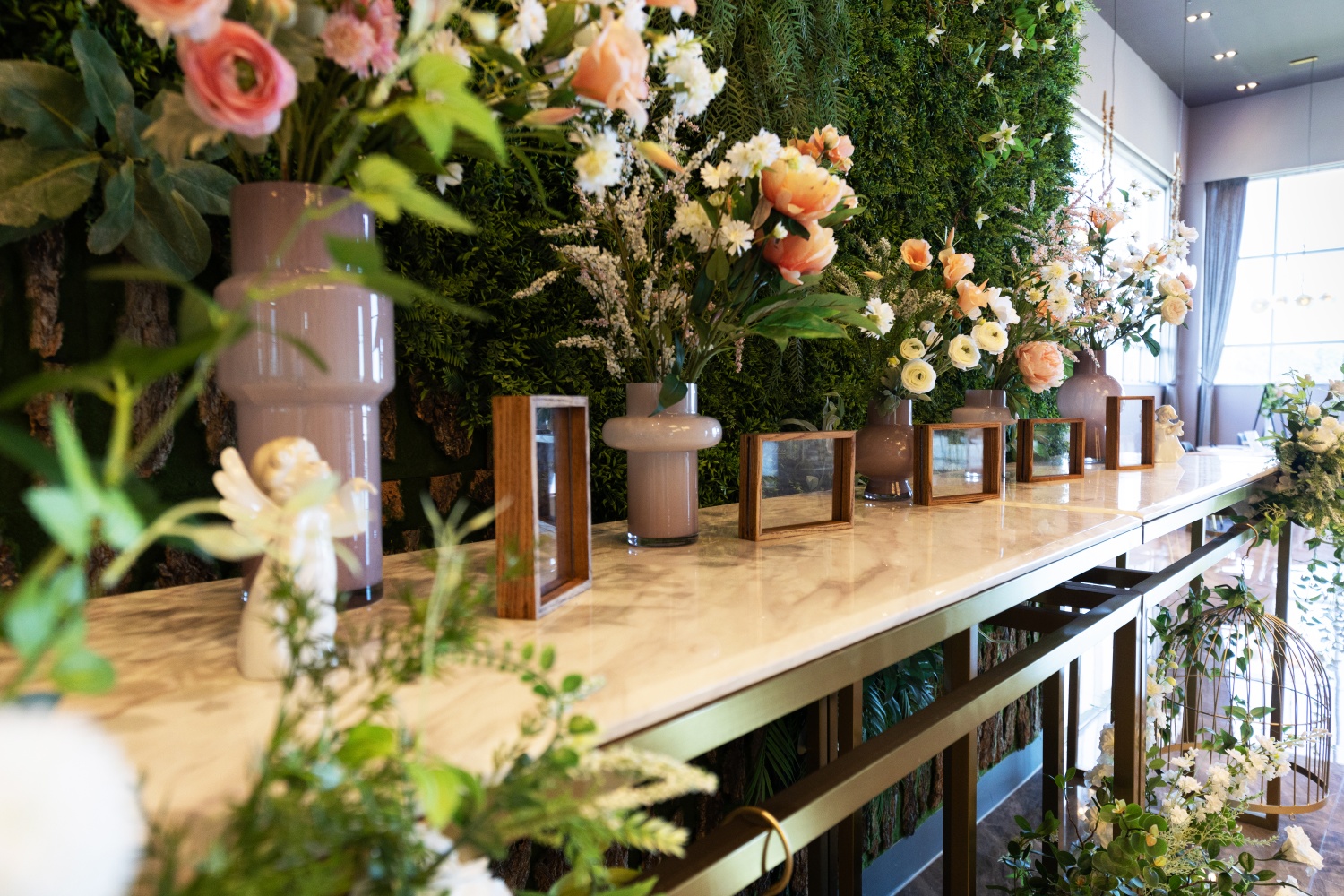 다채로운 오브제 연출로 공간의 품격을 높이며 대기실 너머로 펼쳐지는